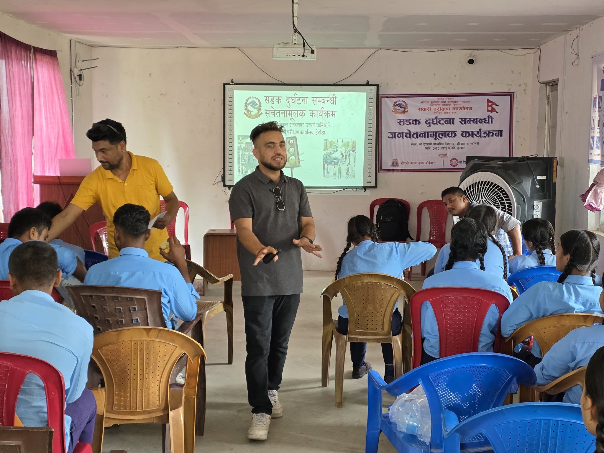 श्री देउराली माध्यमिक विद्यालय, बर्दिवास-०१,महोत्तरीमा आयोजित सडक दुर्घटना सम्बन्धी जनचेतनामुलक कार्यक्रम